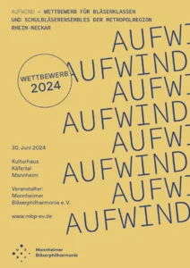 Jedes Jahr im Sommer veranstaltet die Mannheimer Bläserphilharmonie den Wettbewerb »Aufwind« für Bläserklassen und Schulbläserensembles der Metropolregion Rhein-Neckar. Der Aufwind-Wettbewerb ist für viele Schülerinnen und Schüler sowie ihre Lehrerinnen und Lehrer ein motivierendes Ziel am Schuljahresende. Mit ihren Klassen oder Schulorchestern treten sie an, um zu zeigen, was sie musikalisch erarbeitet haben! Pro Jahr nehmen etwa 10 bis 15 Ensembles aus Schulen der Rhein-Neckar-Region teil.