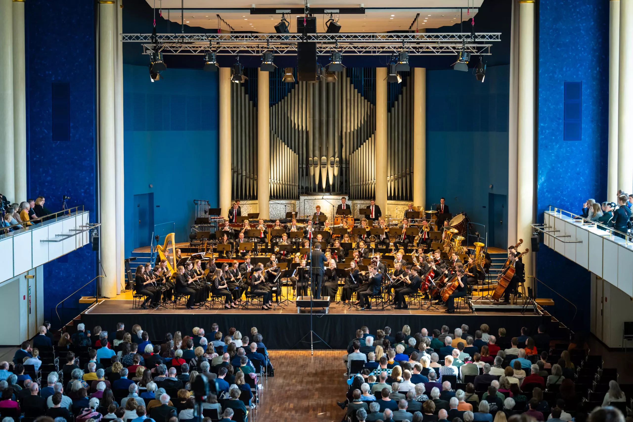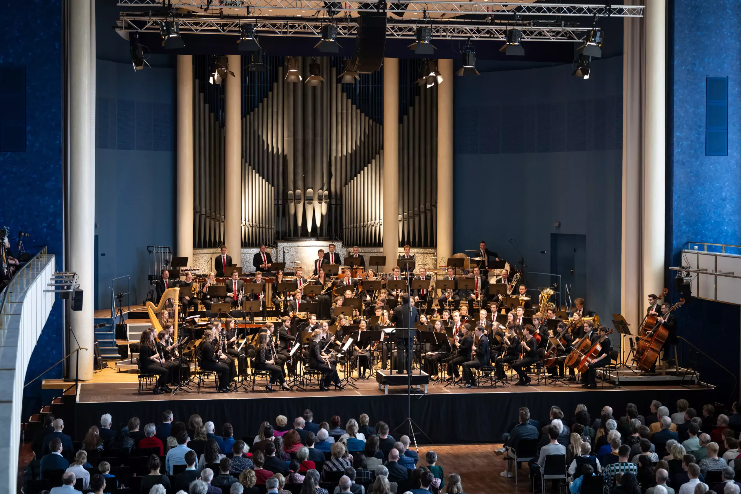 Bläserphilharmonie Mannheim spielt im Mannheimer Rosengarten unter Luciano Pereira Werke portugiesischer Komponisten